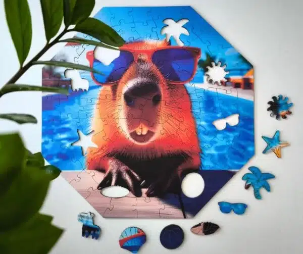 ...nu doar un capybara frumos care vă zâmbește, ci și sentimentul care îi face pe atât de mulți oameni să se îndrăgostească de lumea puzzle-urilor din lemn: calmul, sentimentul de realizare și bucuria de a crea.