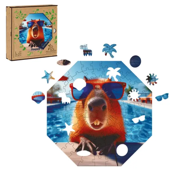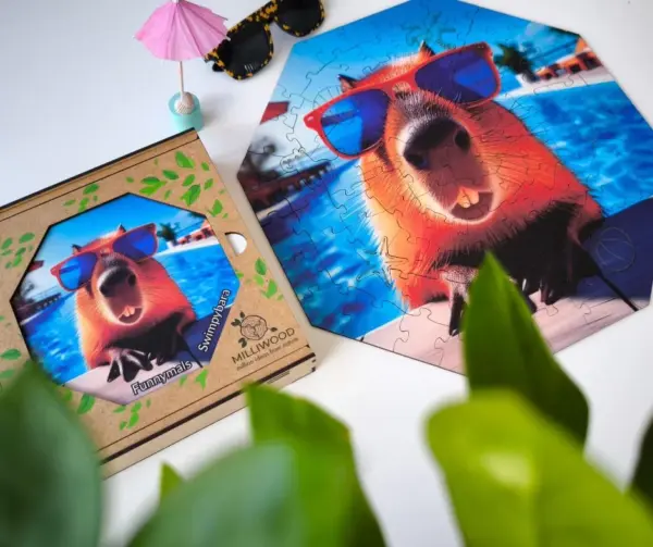 Swimpybara face parte dintr-o serie mai mare bazată pe motive animaliere, care vă permite să combinați mai multe puzzle-uri și să creați compoziții mai mari.
