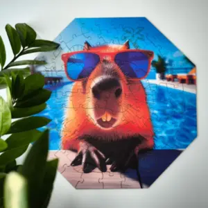 Puzzle-ul octogonal oferă imaginii finite un aspect unic care iese în evidență pe perete.
