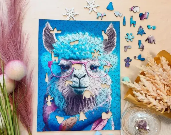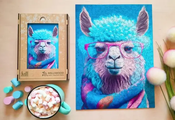 Lasă această alpaca specială în casa ta și bucură-te de experiența reală a unui puzzle din lemn premium!