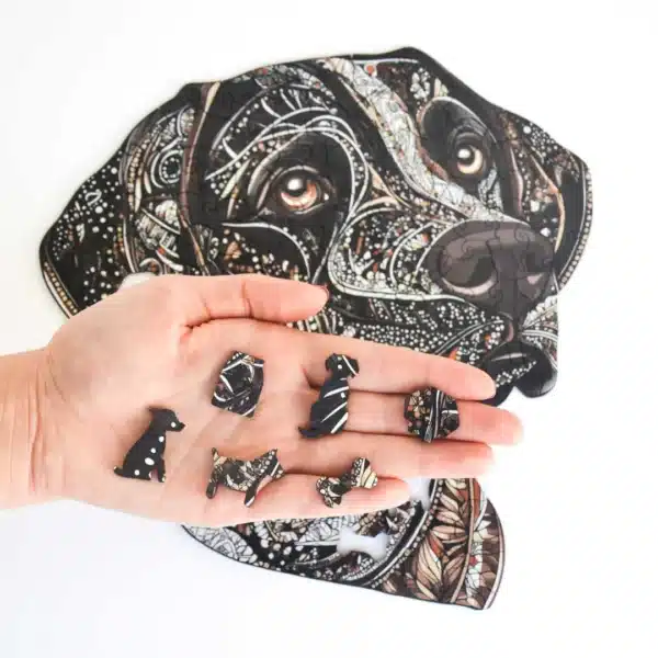 Fiecare piesă a puzzle-ului din lemn Chocolate Labrador este unică: fiecare piesă de puzzle din lemn are o formă unică, ceea ce este foarte distractiv pentru adulți și copii deopotrivă. O să vă placă!