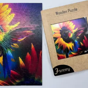 A Colibri puzzle din lemn condensează energia minunată a naturii și bucuria vieții într-o singură imagine. Pasărea colibri, înălțându-se în razele soarelui și strălucind în culorile curcubeului, este un simbol al libertății, ușurinței și mișcării eterne. Culorile calde ale florii-soarelui din fundal și penajul strălucitor al păsării se combină pentru a crea unul dintre cele mai frumoase momente ale naturii - un echilibru perfect între liniște și vitalitate.
