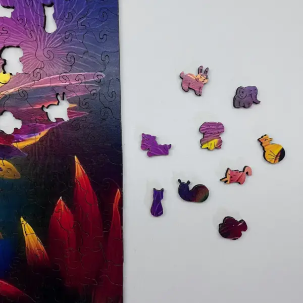 Acest puzzle din lemn nu este doar o jucărie, ci o experiență magică care celebrează frumusețea vieții în fiecare piesă.