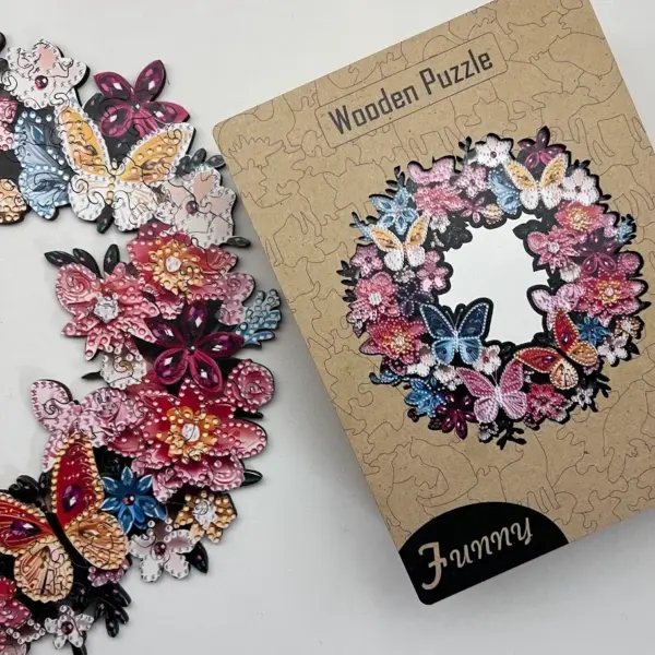 A Coroniță de fluturi puzzle din lemn aduce frumusețea naturii și grația fluturilor în casa dumneavoastră. Coroana de flori colorate și fluturi frumoși nu este doar o priveliște atrăgătoare, ci și o experiență inspirată și liniștitoare de desfășurat.