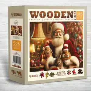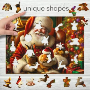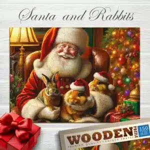 Acest puzzle jigsaw unic din lemn nu numai că formează o imagine uimitoare, dar oferă și o experiență specială atunci când faceți puzzle-ul. Scena cu Moș Crăciun și cei trei iepurași simpatici evocă intimitatea Crăciunului, dragostea pentru animale și magia sezonului festiv. Puzzle-ul este plăcut pentru toate vârstele, fie că este vorba de copii care descoperă detalii interesante sau de adulți care caută o pauză de relaxare. Puzzle-ul spune o poveste captivantă, care va aduce garantat un zâmbet pe chipuri, și este perfect ca un cadou sau o decorațiune reconfortantă.