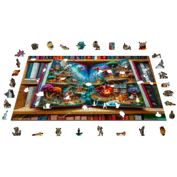 Puzzle-ul Enchanted Fairy Tales promite o călătorie în tărâmul imaginației. Pe măsură ce îl asamblați, urmăriți cum se desfășoară o poveste minunată - o carte magică ale cărei personaje prind viață! Explorează tărâmuri ascunse unde dragonii se înalță pe cer, zânele delicate zburdă și o varietate de creaturi magice locuiesc.