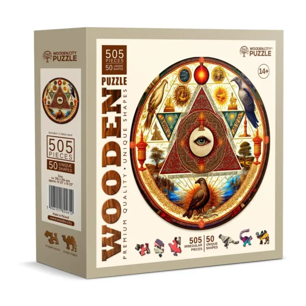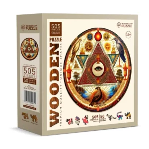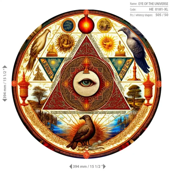 Acest extraordinar puzzle din lemn de 500 de piese Eye of the Universe prezintă un ochi perfect circular, cu detalii complexe, înconjurat de păsări vibrante.