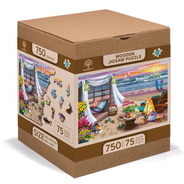 Bemutatjuk a „Summertime 750 fa puzzle”-t, amely a tengerparti nyugalom magával ragadó ábrázolása, amely könnyedén magába foglalja egy tökéletes nyári este esszenciáját.