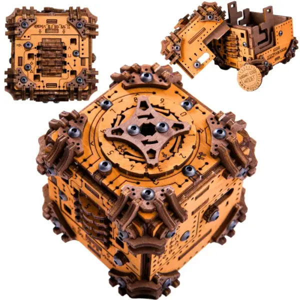 A puzzle doboz kiváló minőségű, környezetbarát fából készül, amely tartós és esztétikus megjelenést biztosít. A részletgazdag mintázat és a látható mechanikus elemek különleges, mérnöki hangulatot adnak neki.