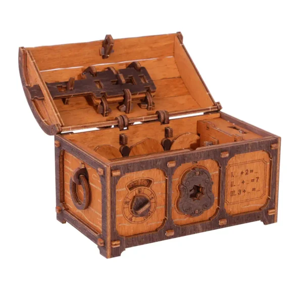 Acest cufăr cu comori special - puzzle 3D din lemn este pentru cei care nu se pot mulțumi cu un model de viață obișnuit. Fiecare element este proiectat nu numai să se potrivească, ci și să funcționeze - cu încuietori secrete, compartimente ascunse și o structură reală și funcțională a cufărului cu comori. Escape Room Treasure Chest oferă o experiență unică: un puzzle logic, o provocare creativă și o unitate de depozitare elegantă, toate la un loc.