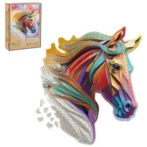 În acest puzzle din lemn special, fiecare pas al calului este bine gândit și încrezător – la fel cum fiecare piesă așteaptă să fie descoperită și așezată la locul ei.